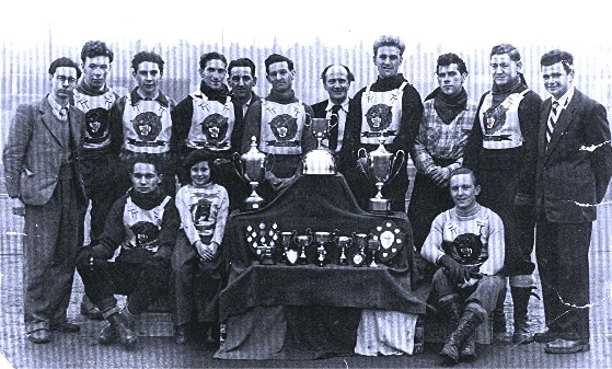 Posing with their trophy collection for 1951. SE London League Championship, Russell Trophy, Glover Trophy, SE London League Ind. Championship 1st Ron Holvey, 3rd Ken Shepherd. SE London League Best Pairs 1st Ron Holvey & John Cooper, 3rd Dave Collins & Alan Eastment.NACSA London Ind. Championship 1st Arthur Newsom, 3rd Ron Holvey.