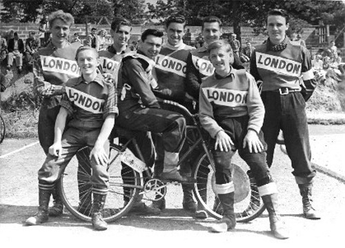 Lt to Rt. Ernie Lamacq (Poplar Penquins), Ron Holvey (Tooting Tigers), Pete Western (New Cross Rangers), Tommy Sweetman (Arsenal Aces), George Harrison (Warwick Lions), Vic White (Arsenal Aces?), Gus Garratt (Verney Lions), Joe Goody (Blackheath Aces).